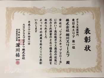 AGC(旭硝子)から表彰されました!(2019年05月29日)