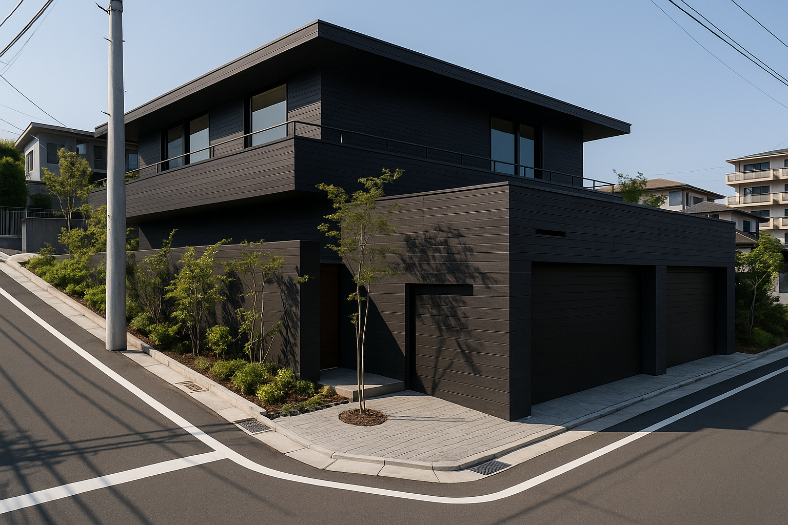 傾斜地を不利と考える人は多い。だが私たちはそこに“美しい余白”を見る。地形に抗わず、むしろ抱きかかえるように建てることで、住宅は自然と一体となり、街の中で静かに浮かび上がる。今、私たちが構想しているこの邸宅は、そんな思想をもとに生まれつつある。低い位置にはRC造のガレージを設け、その奥を半地下空間として活用する。地中の静けさを味方にした趣味の部屋、ワインセラー、あるいは映像の世界に沈み込むシアター——その使い方は住まう人の感性次第だ。半地下の奥からは直接住宅へと入ることができ、雨の日でも傘を差さずにリビングへとつながる。この動線の合理さと美しさが、まさに邸宅の品格を形づくる。ガレージの上に重なる2階部分は木造で、空へと伸びるような軽やかさを纏う。1階RCと2階木造の混構造。強さと柔らかさ、硬質と温もり——この二律背反の調和こそ、私たちが追い求める理想のかたちである。